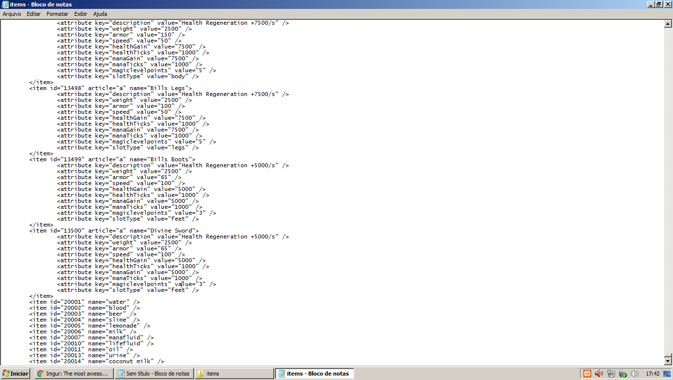 Ola pessoal, quando tento criar um novo item no meu server, com o item editor ele cria 1 item com o mesmo id do ultimo item, isso q acontece imagens abaixo, uso os programas, dat editor e item editor.. olha galera, sou novo aqui no forum, nao sei se postei na area certa, obrigado ! as imagens estão anexadas abaixo