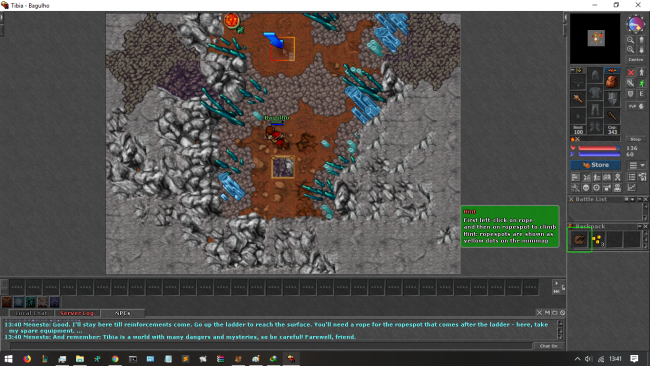 Ele pede para usar a corda, aí quando eu uso a tal corda o cliente simplesmente fecha, e não consigo mais logar nesse char, pois quando dou enter fecha o cliente sem mostrar nenhum bug nem na distro, nem no cliente.